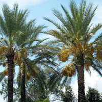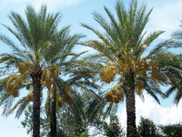 Descripció: Palmera dioica de 15-20 m amb troc (estípit) bastant prim i ocasionalment corbat, únic o ramificat des de la base i cobert amb les restes de les fulles velles, amb capçada de 6-10 m de diàmetre. Fulles de 3-7 m, pinnades, formades per fins a 150 segments de color glauc, amb espines dures a la part inferior del pecíol. Inflorescència en panícula, amb una bràctea (espata) que n'envolta la part inferior. Flors unisexuals, calze amb 3 sèpals i corol·la amb 3 pètals; androceu de 6 estams de color crema les masculines, i gineceu tricarpel·lar les femenines. Fruit en baia (dàtils) ovoide, de polpa (mesocarpi), carnós i dolç, d'un groc ataronjat de jove i d'un vermell brunenc en la maduresa.