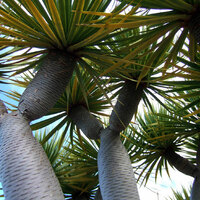 Descripció: Arbre de tija dreta, amb fusta duríssima, longeu, amb ramificació dicotòmica (forques de 2 en 2), tot i que només es ramifica cada cop que floreix (cada 10-15 anys). Fulles lanceolades, enteres, de color verd blavós, formant rosetes a l'extrem de les branques. Inflorescència en panícula terminal. Flors hermafrodites amb 5 tèpals blanquinosos, androceu de 6 estams i gineceu tricarpel·lar. Fruit en baia carnós i globós de fins a 1,5 cm, d¿un groc ataronjat, en el qual sol madurar 1 única llavor.