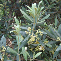 Descripció: Arbre perennifoli de 4-10 m d'alçada, amb tronc massís, gruixut i tortuós en els exemplars vells, i copa ampla, amb escorça rugosa de color gris platejat. Fulles simples, oposades, el·líptiques, mucronades a l'àpex, enteres, coriàcies, curtament peciolades, amb anvers glabrescent i verd fosc i revers grisenc i densament cobert de pèls esquamiformes. Inflorescència en panícula axil·lar. Flors hermafrodites, unisexuals en alguns casos, aromàtiques, actinomorfes, pedunculades; amb calze acopat amb 4 dents més o menys desenvolupades, corol·la amb 4 pètals, blanquinosa, androceu de 2 estams glabres d'anteres blanquinoses o groguenques, i gineceu bicarpel·lar, glabre. Fruit en drupa, d'ovoide a subesfèric, verd de jove, negre o morat en la maduresa, pinyol (endocarpi) fusiforme, petri, rugós o llis.