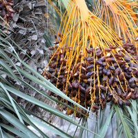 Descripció: Palmera dioica de fins a 20 m, amb tronc (estípit) únic, recte, de color gris bru, gruixut, estriat horitzontalment i amb la part superior eixamplada formant una valona constituïda per les fulles mortes convenientment tallades. Fulles pinnades, de 2-7 m, nombroses, coriàcies, en roseta terminal, d'un color verd intens, més o menys pèndules i amb espines a la part basal; nombrosos segments rígids, estrets, aguts, amb el limbe asimètric i lleument doblegats al raquis. Inflorescència femenina en panícula pèndula d'1-2 m, ramosa, oberta i laxa, i masculina més tancada i curta. Flors unisexuals de color blanquinós o groguenc amb 6 tèpals. Fruit en baia ovoide, polpa (mesocarpi) poc carnosa i sabor amarg, de color verd groguenc en etapes primerenques i ataronjat en la maduresa.