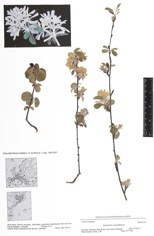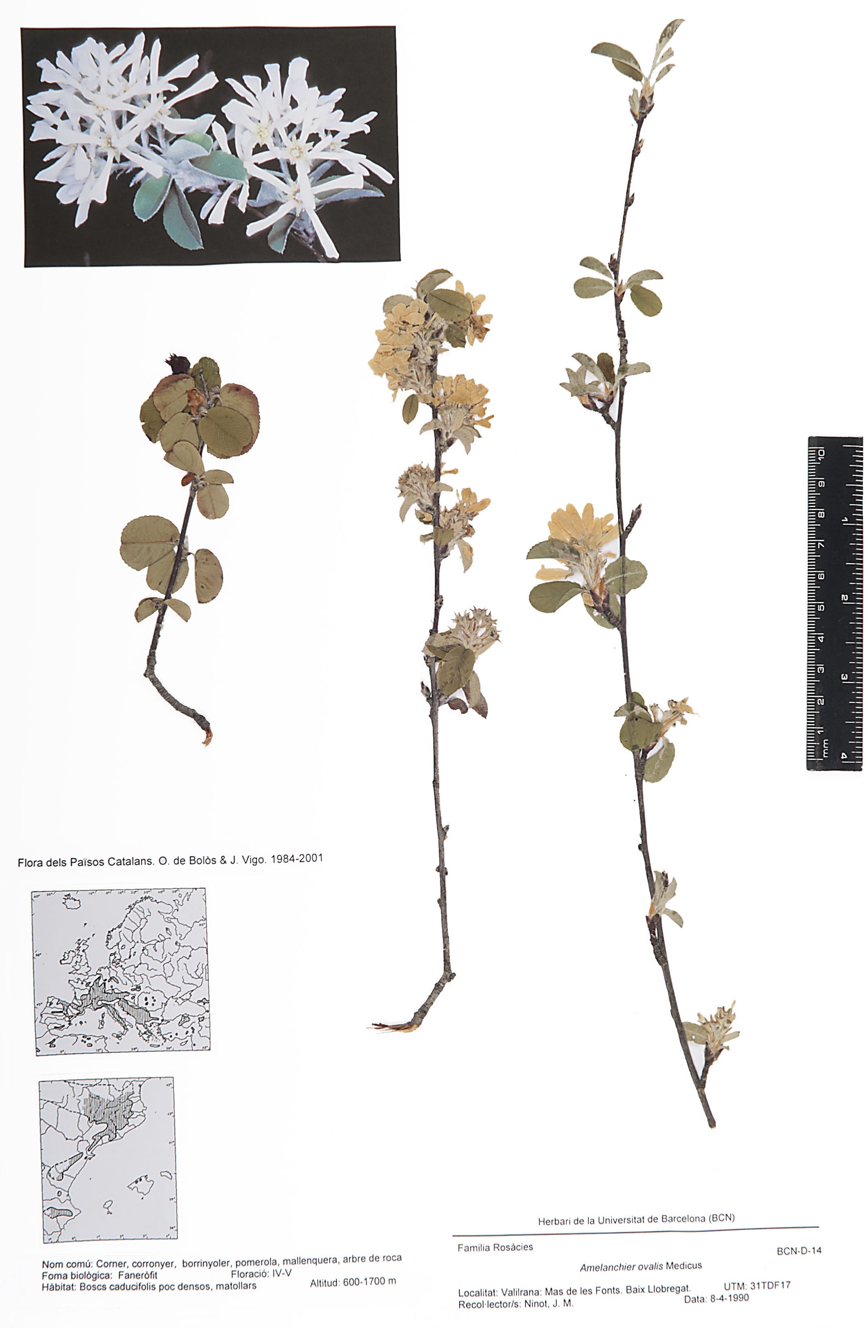Part de Amelanchier ovalis Medik. (Corner, corniguer, cornulier, corronyer, corunyer, borrinyoler, pomerola, mallenquera, arbre de roca)