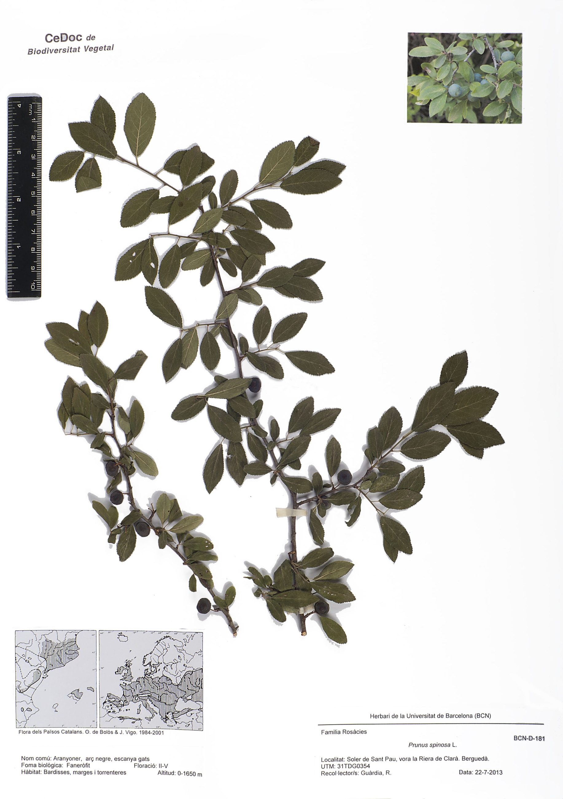 Prunus spinosa L. (Aranyoner, Arç negre, Escanya gats)
