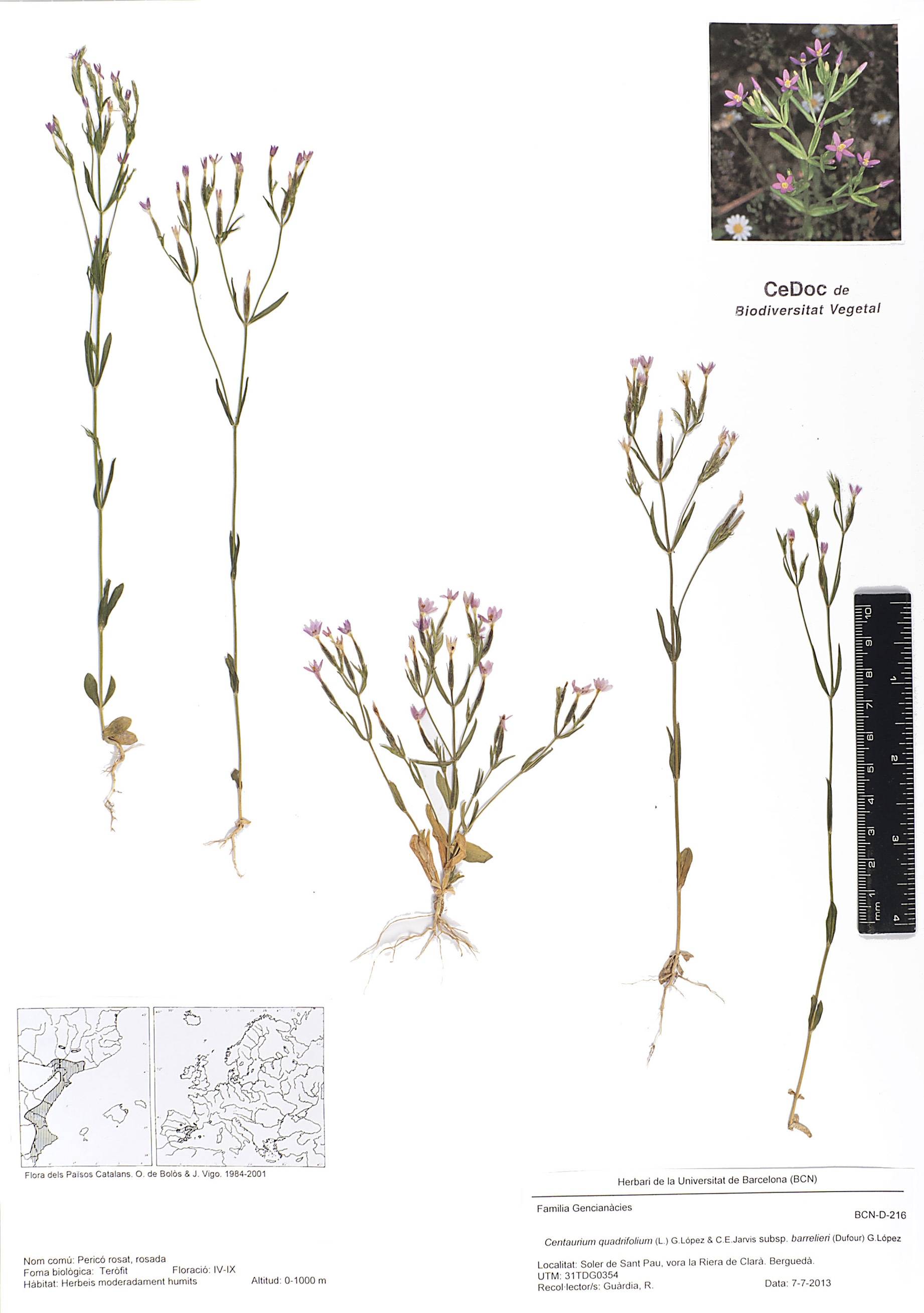 Part de Centaurium quadrifolium (L.) G.López & C.E.Jarvis subsp. barrelieri (Dufour) G.López (Pericó rosat, rosada)
