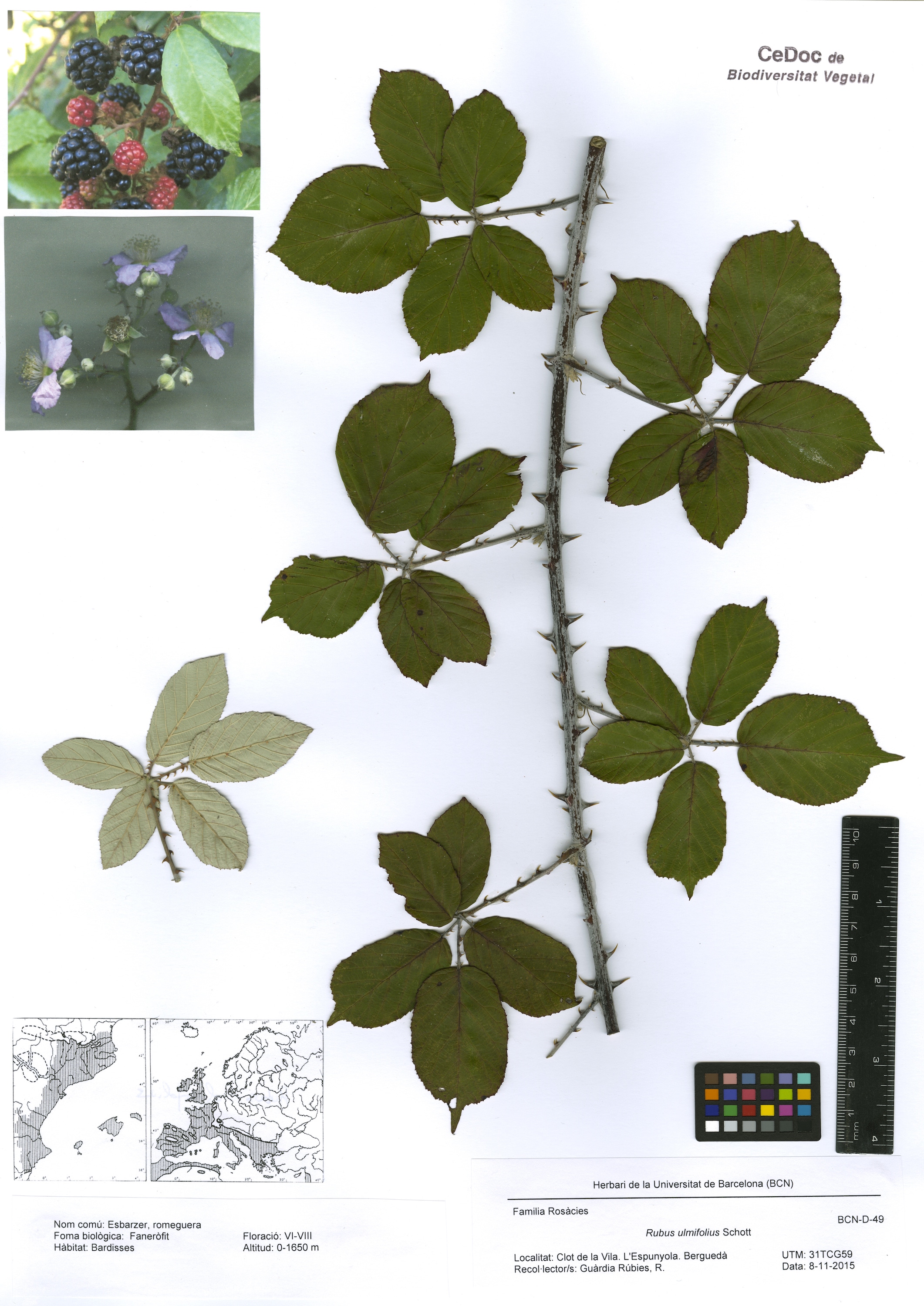 Part de Rubus ulmifolius Schott (Abarta, esbarzer, esbarzer de móres, romeguer, romeguera)