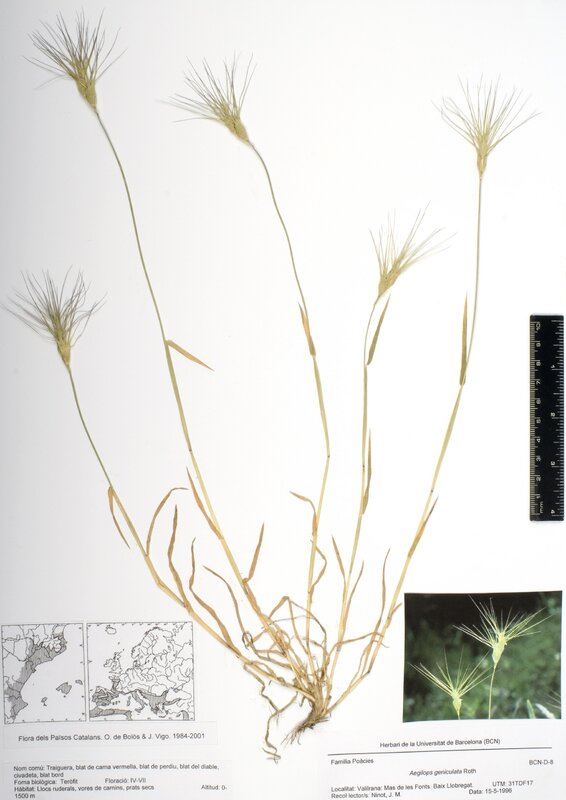 Part de Aegilops geniculata Roth (Traiguera, blat de cama vermella, blat de perdiu, blat del diable, civadeta, blat bord)
