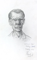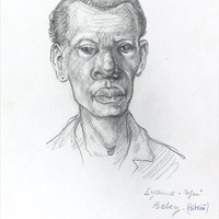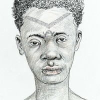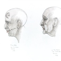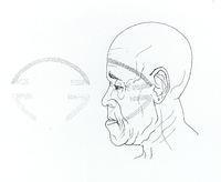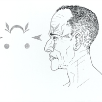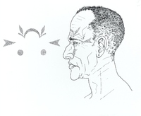 Cap tatuat d'home de l'ètnia fang. Proves de maquetació per a un article publicat al suplement Ciència de «La Vanguardia» l'any 1990. |