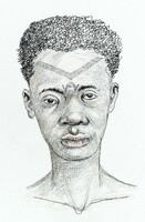 Cara tatuada d'home de l'ètnia fang. |