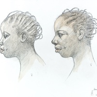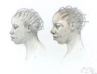 Dos caps tatuats de dona de l'ètnia fang. |