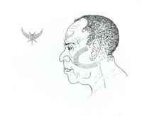 Dibuix de cap de Floquet de Neu. Publicat a: BALADA, Marta; SANS, Soledat, Bestiari, Barcelona: Associació de Mestres Rosa Sensat, 2008. |