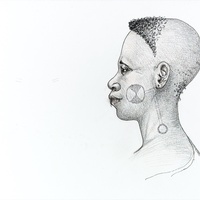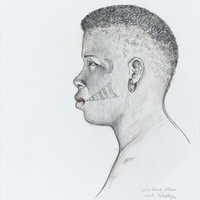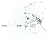 Descripció: Cara tatuada de dona de l'ètnia fang.