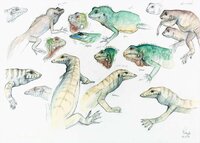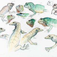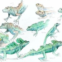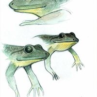 Descripció: Dibuix de camp del procés metamòrfic de dues granotes gegants.