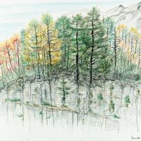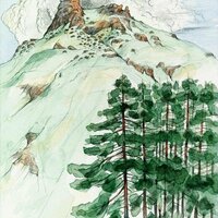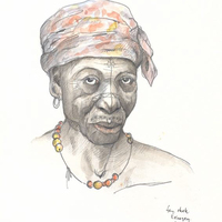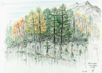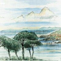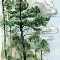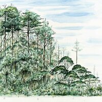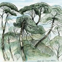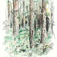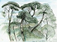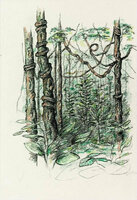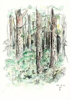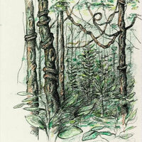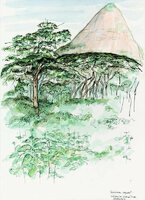 Descripció: Dibuix de la selva del Río Muni fet a Guinea Equatorial.