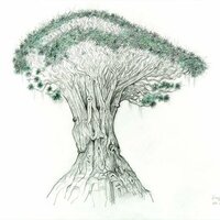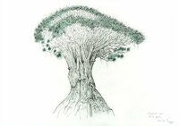 Descripció: Dibuix de Drago de Icod de los Vinos, Tenerife (Canàries) ple de fruits.