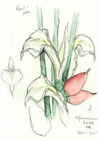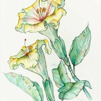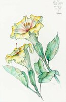 Descripció: Dibuix de dues flors de l'Hibiscus, de Teguise (Lanzarote, Canàries).
