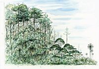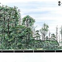 Descripció: Dibuix de perfil de vegetació de la selva de Mbini (Guinea Equatorial. Dibuix reproduït al diari La Vanguardia.