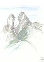 Dibuix del cap de Floquet de Neu vist des de diferents angles, fet a Ikunde (Guinea Equatorial). |