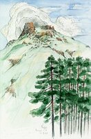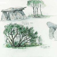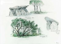 Descripció: Tres dibuixos: El dolmen de la Creu d'en Cobertella, el dolmen anomenat "El Llit de la Generala" i una alzina surera