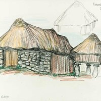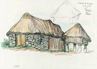 Descripció: Graner típic i cabana de pedra i palla.