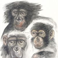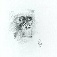 Dibuix de cap del goril·la Ntao del zoo de Barcelona. |