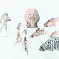 Descripció: Dibuix de tres espècies diferents de rèptil al Zoo de Barcelona.