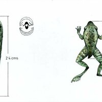 Descripció: Tres dibuixos de la part anterior d'una granota gegant del Río Mbia.