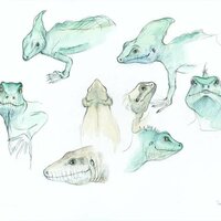 Descripció: Dibuix de diferents perspectives d'un llangardaix: de perfil, per sobre i per sota, fet a Canalroya.