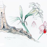 Descripció: Arrels de faig al Montseny i detall d'un exemplar d'amarilis i d'una orquídia.