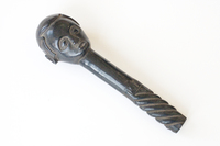 Objecte etnogràfic. Mànec de bastó de comandament fang amb cap d'home procedent de la regió de Bibeiny. |