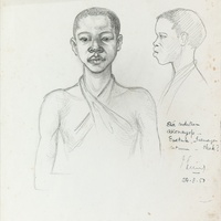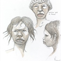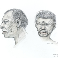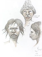 Descripció: Dos caps tatuats d'indígenes de la tribu Esseng.