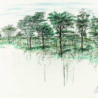 Descripció: Dibuix de perfil de vegetació de Boende des del Centre Ikunde, Mbini (Guinea Equatorial).