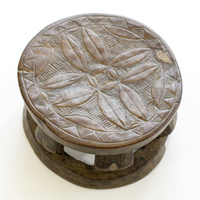 Descripció: Objecte etnogràfic de 20 cm de diàmetre. Tamboret procedent de la regió d'Ebebiyin.