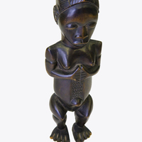 Descripció: Obra d'art de fusta negra. Figura d'home procedent del poblat d'Akonayop, pertanyent a la tribu d'Essatop, de l'ètnia fang.