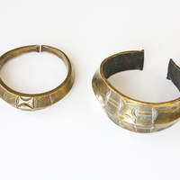 Objectes etnogràfics. Dos collarets fang decorats de 13 i 14 cm de diàmetre respectivament. També són coneguts amb el nom de «nkembe» i procedeixien de la regió d'Evinayong. |
