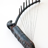 Descripció: Objecte etnogràfic de 27 cm de diàmetre. Arpa pertanyent a la tribu ntum de l'ètnia fang.