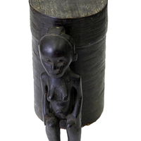 Obra d'art de fusta negra. Figura d'home procedent del poblat d'Akonayop, pertanyent a la tribu d'Essatop, de l'ètnia fang. |