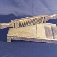Instrument de taula, d'ús manual per a fer píndoles que consta de dues parts: la taula (5 x 32,5 x 15,5 cm) i el mànec (4 x 37 x 6 cm). La taula és un element passiu, rectangular, lleugerament inclinada i integrada per tres zones: zona llisa de fusta, planxa transversal metàl·lica acanalada, i caixa o receptacle de fusta. A banda i banda hi ha sengles barres metàl·liques quadrangulars que actuen de guies o rails per al moviment del mànec. El mànec és l'element actiu, està format per una barra de fusta de secció rectangular, estrangulada als extrems que són arrodonits, i per una làmina metàl·lica a la part inferior cargolada a la fusta, acanalada i amb els marges més alts, per a encaixar a la guia de la taula.