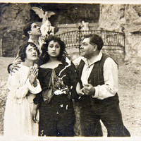 Postcard stills from the film "La loca del monasterio", directed by Domènec Ceret (1916) for the production company Studio Films of Barcelona. Many exteriors were shot at Montserrat. The critical reception singled out the performances of the actors Lola Paris (la loca, the madwoman of the title) and Domènec Ceret (Pablo).