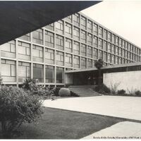 L'edifici és un exemple de l'herència dels principis constructius del moviment modern, i es fa ressò de les propostes arquitectòniques internacionals. Així doncs, hi trobem reflectides, d'una banda, les propostes de Le Corbusier en els porxos de la planta baixa i la rampa, i també en la mancança de decoració, i de l'altra, l'estil del grup artístic i arquitectònic De Stijl en la divisió geomètrica en quadrats i rectangles de les vidrieres exteriors.