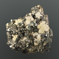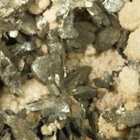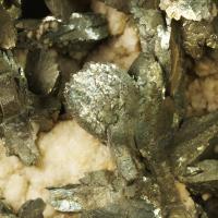 Polimorfo de la pirita. Agregado de cristales de marcasita en forma de «cresta de gallo» junto con dolomita. Los cristales más espectaculares de España provienen de esta localidad de Cantabria.