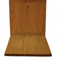 El sol fa una ombra sobre la guia, en aquest cas un fil, que es projecta sobre una escala que marca l’hora solar. Precisió de 15 minuts, en un rang de les 6 h a les 19 h.