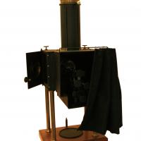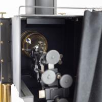 La llanterna funciona per arc voltaic entre dos elèctrodes de carbó a 100 V. Els elèctrodes es troben a l’interior de l’estructura, la qual té una obertura al darrere i dues obertures laterals. Per l’obertura posterior es pot accedir al sistema de rodes que varien la posició d’un dels elèctrodes. Si se n’observa la base, es veu que el sistema d’il·luminació inicial (probablement d’oli o de petroli) es va modificar per un arc voltaic. La llum es controlava mitjançant un disc giratori de tipus revòlver amb diversos diafragmes. Instrument complet. En bon estat de conservació.