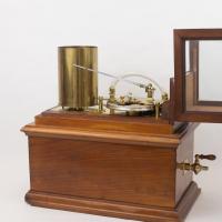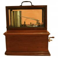 Instrument que mesura la pressió de gasos i ho enregistra en un paper situat sobre un tambor giratori. L’entrada lateral amb clau de pas s’utilitza per introduir un gas al recipient interior.