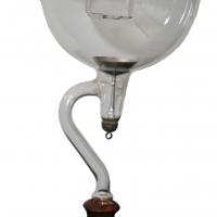 Aquest tub de Crookes, precursor del tub de raigs catòdics, serveix per demostrar que la propagació dels raigs catòdics és rectilínia, però que es corba sota l’acció d’un camp magnètic.