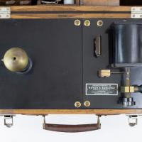 Dissenyat per l’inventor i enginyer elèctric espanyol Mónico Sánchez Moreno (1880-1961). Estava especialment interessat en l’aplicació de noves tecnologies, com els raigs X, a la medicina. Va ser pioner en el camp de la radiologia per la invenció d’aquest aparell portàtil de raigs X.