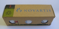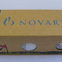 Capsa amb tres pilotes de golf, publicitat dels medicaments "Diovan", "Frosinor" i "Exelon" de Novartis |