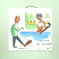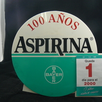 Descripció: Calendari de mostrador commemoratiu dels 100 anys de l'Aspirina -any 2000- en forma d'un gran comprimit de l'especialitat .