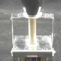 Descripció: Marcador i datador metàl·lic de la farmàcia Roig Montblanc, marca Justrite. Per a timbrar les recpetes de la Farmàcia, conforme havien dispensat. El número 503 és el número de la Farmàcia Roig