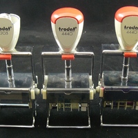 Descripció: Marcadors i datadors metàl·lics de la farmàcia Roig Montblanc, marca Trodat (3 exemplars).