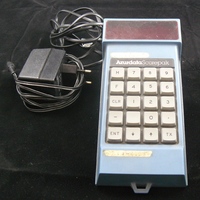Descripció: Aparell marca Azurdata, emprat a les farmàcies per a la transmissió de les comandes als proveïdors. Llibret amb instruccions. Va ser la primera modernització informàtica per a fer comandes. A mesura que es venien , s'anava marcant el codi i es demanava a la Federació Farmacèutica. Els números corresponien: 1-2 (ortopèdia), 3-4 (productes cosmètica), 5 (usat per als productes que no estaven al catàleg nacional), 7-8-9 (medicaments). També servia per fer inventari, la Federació Farmacèutica donava la llista al farmacèutic amb les tarifes.