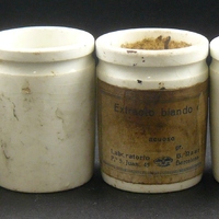 Descripció: Sis pots blancs, un d'ells etiquetat "Extracto blando de"